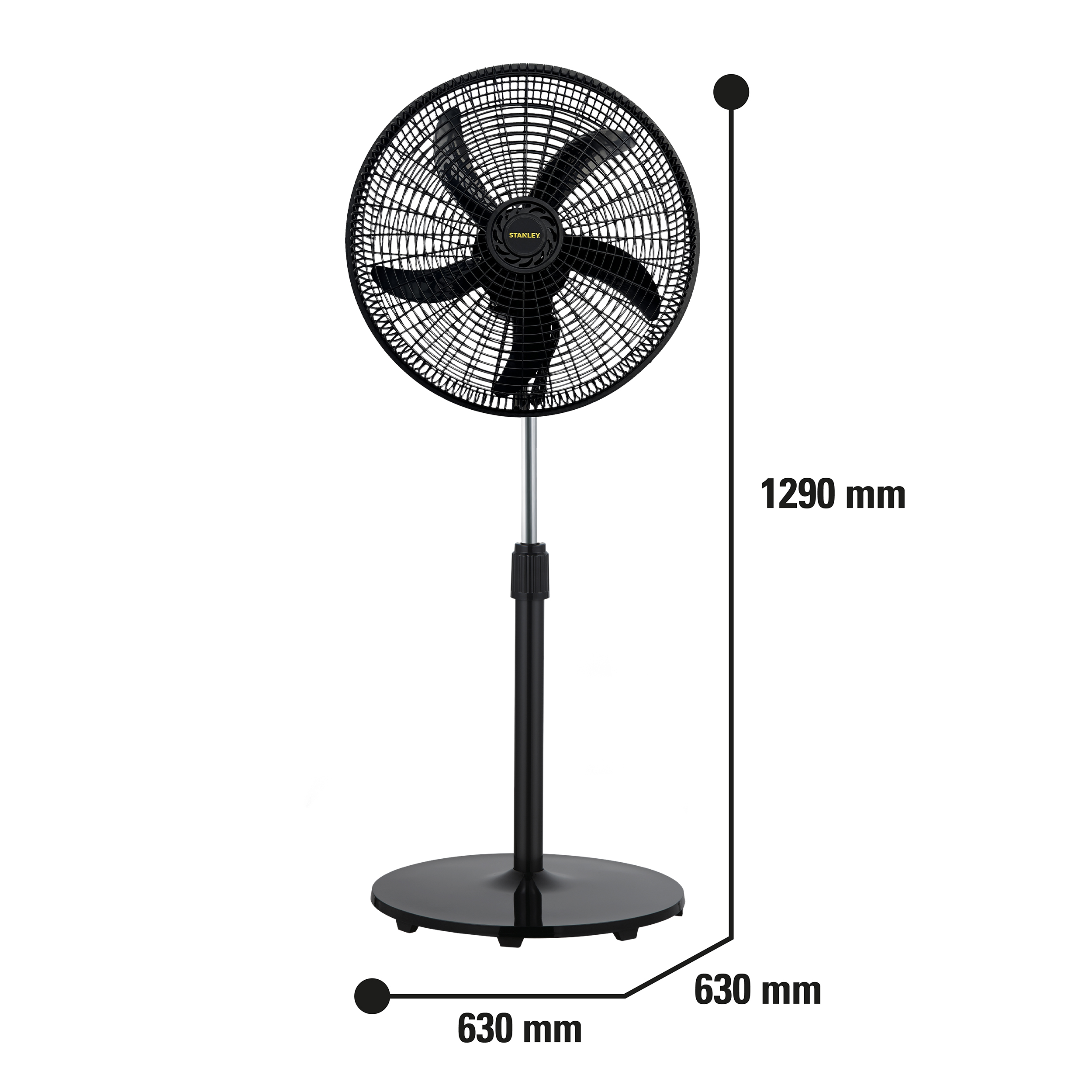 El ventilador de pedestal Stanley STXEJHG1800P de 18″, ofrece un enfriamiento eficiente con un diseño práctico y funcional. Equipado con un motor de aluminio, sus cinco aspas de plástico generan gran flujo de aire, Con tres velocidades, oscilación horizontal de 90° y altura ajustable, permite personalizar la ventilación para cualquier espacio. Su parrilla de plástico garantiza seguridad, mientras que su bajo nivel de ruido y peso ligero lo hacen ideal para todo uso, es perfecto para un enfriamiento confiable y silencioso.